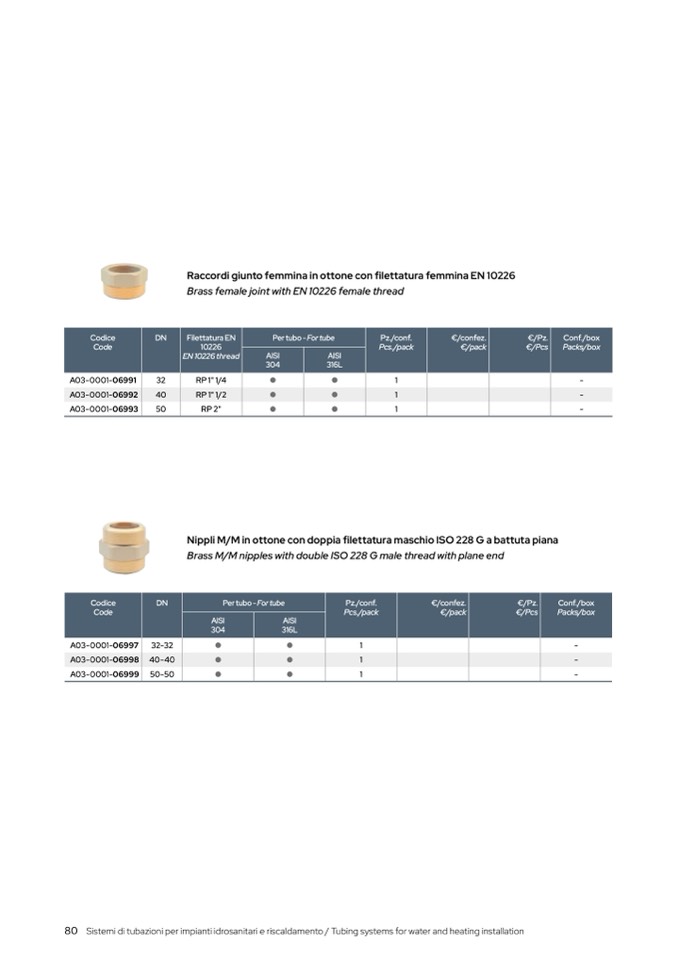 Sistemi di tubazioni per impianti idrosanitari e riscaldamento / Tubing systems for water and heating installation