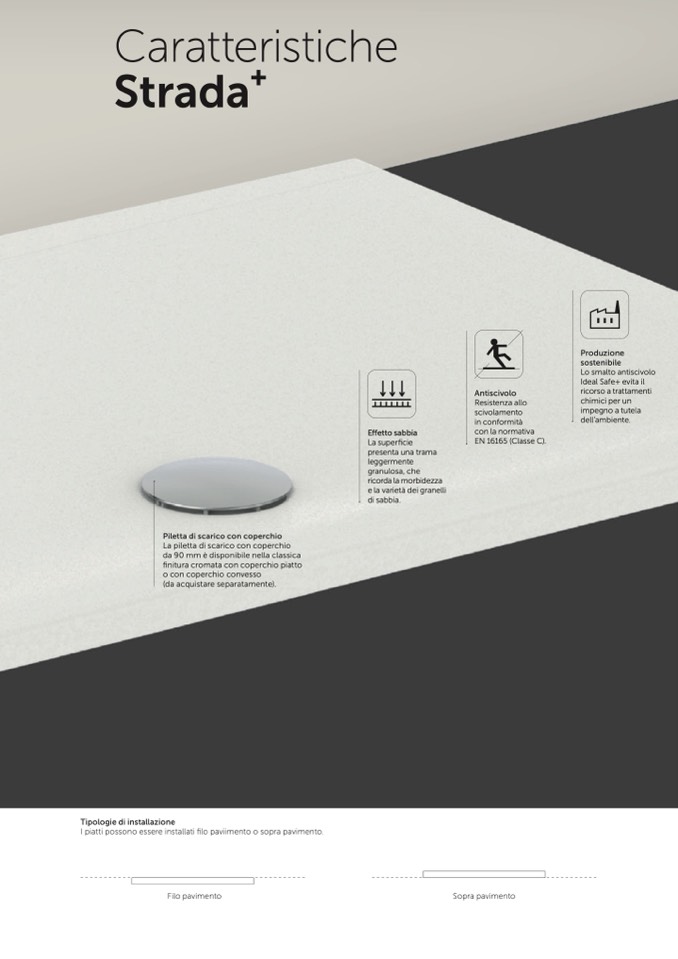 I piatti possono essere installati filo paviimento o sopra pavimento.