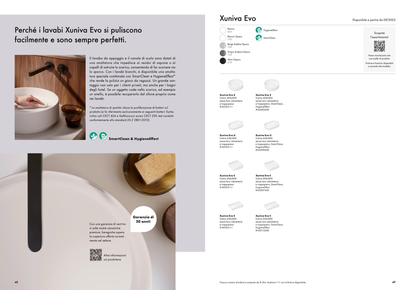 Ciascun numero d’ordine è composto da 8 cifre. Sostituire XXX con la finitura disponibile.