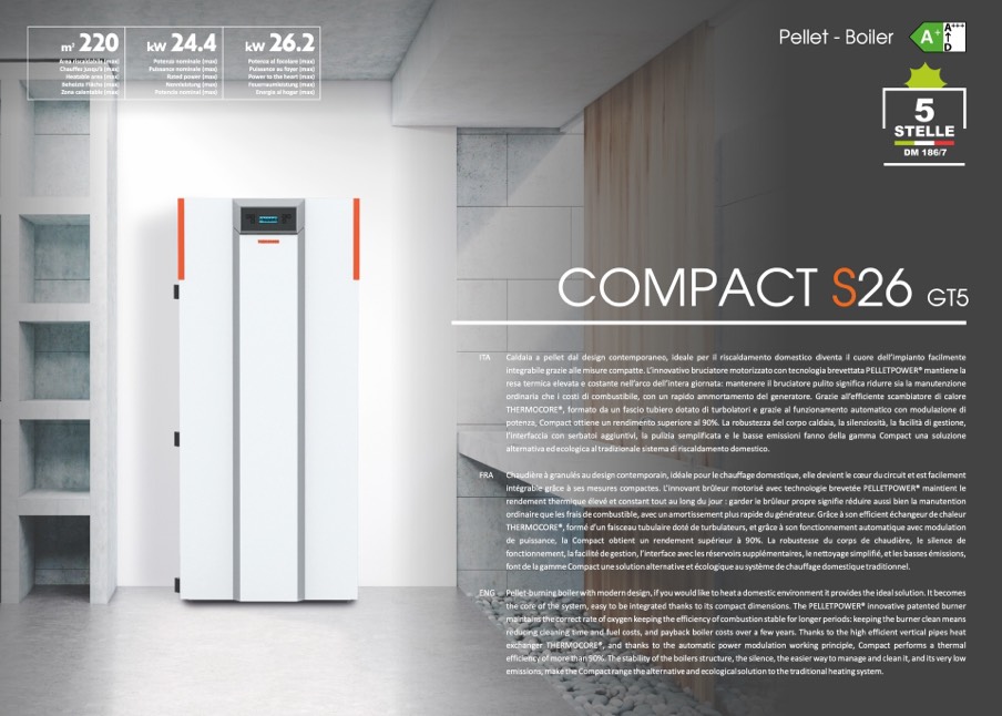 potenza, Compact ottiene un rendimento superiore al 90%. La robustezza del corpo caldaia, la silenziosit