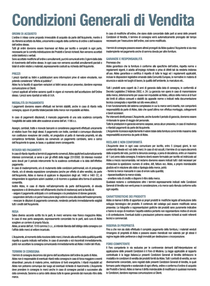 dell’Acquirente, Aldes si riserva di applicare le disposizioni degli art. 1460 e 1461 CC, di