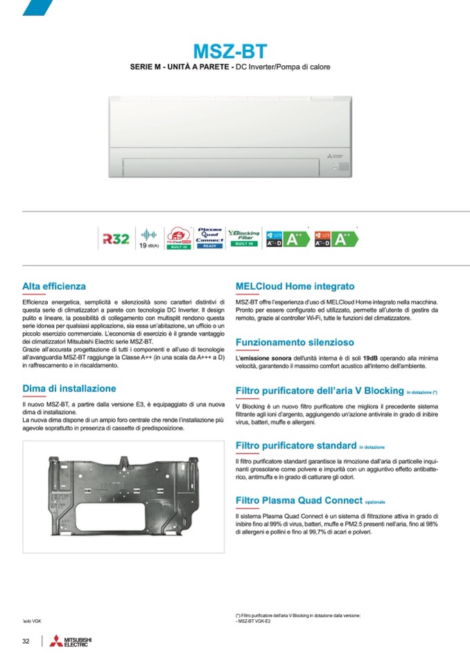 all’avanguardia MSZ-BT raggiunge la Classe A++ (in una scala da A+++ a D)