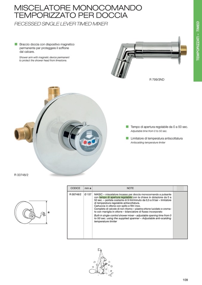 50 sec. – portata costante di 9 litri/minuto da 0,5 a 9 bar – limitatore