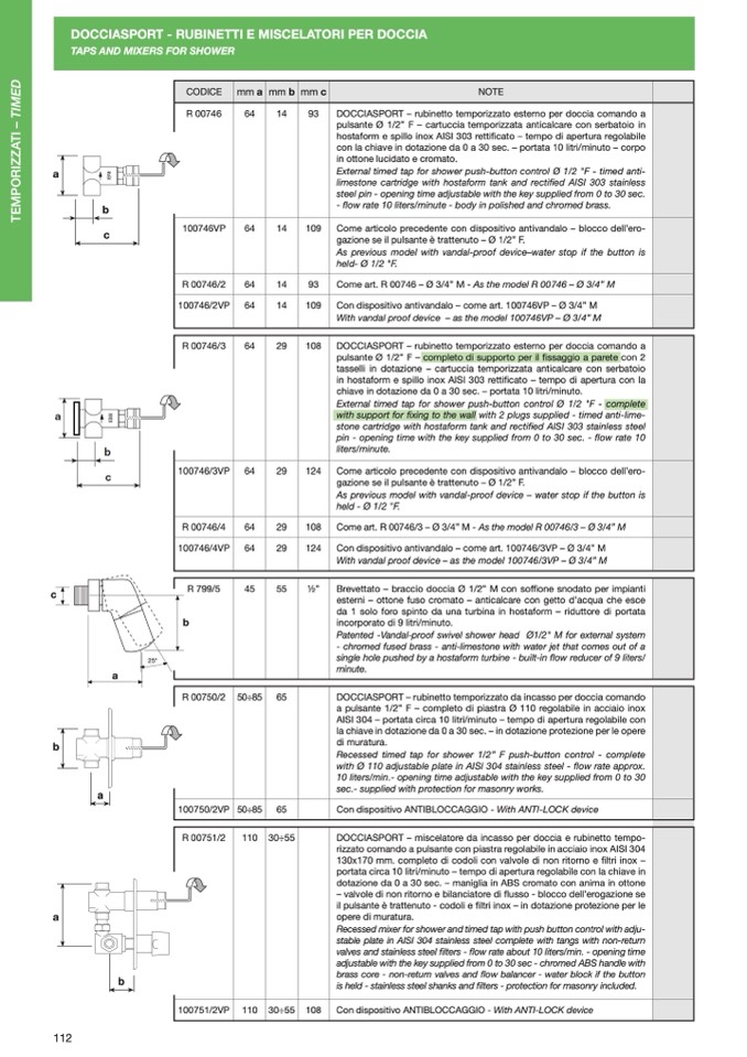chiave in dotazione da 0 a 30 sec. – portata 10 litri/minuto.