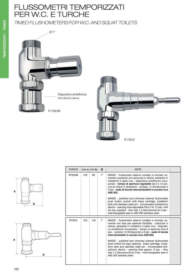 rate 1.2 liters/second at 3 bar - interchangeable seat in