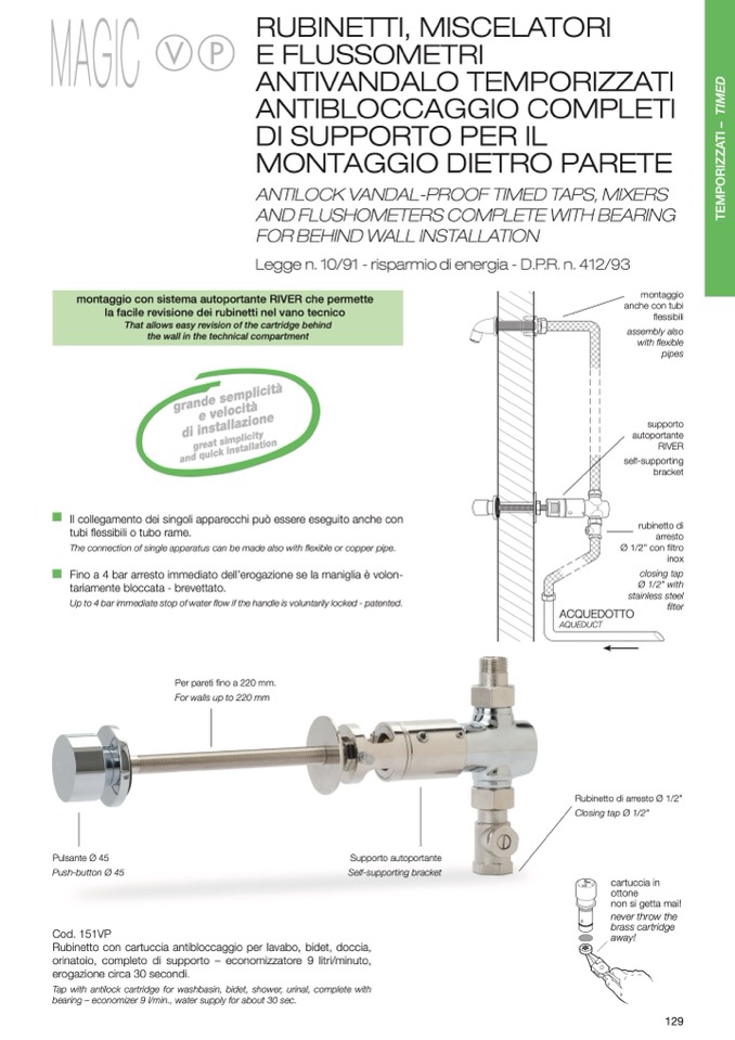 Rubinetto con cartuccia antibloccaggio per lavabo, bidet, doccia,