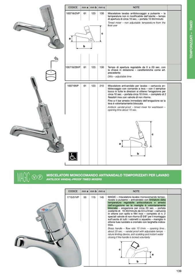 MISCELATORI MONOCOMANDO ANTIVANDALO TEMPORIZZATI PER LAVABO