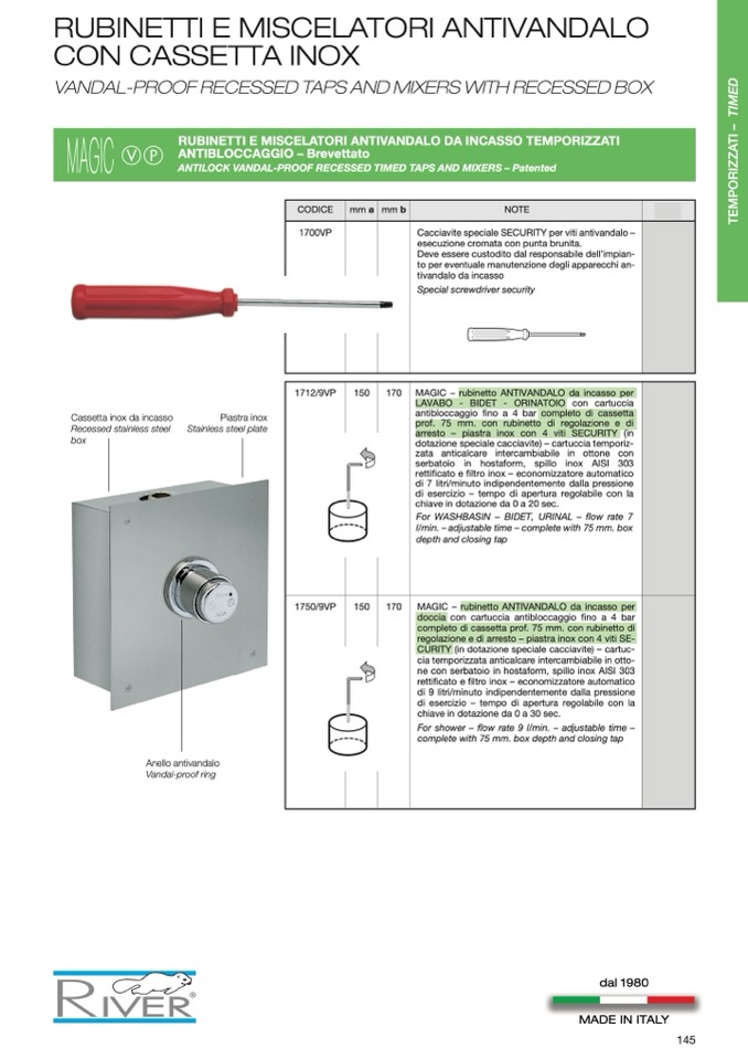 RUBINETTI E MISCELATORI ANTIVANDALO DA INCASSO TEMPORIZZATI