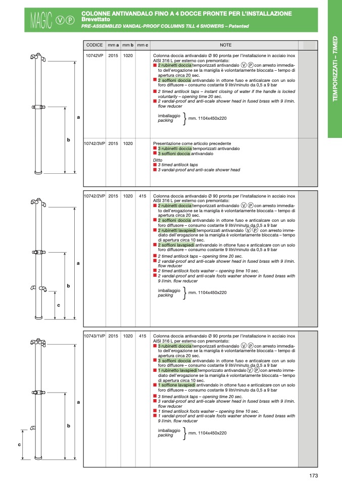 COLONNE ANTIVANDALO FINO A 4 DOCCE PRONTE PER L’INSTALLAZIONE