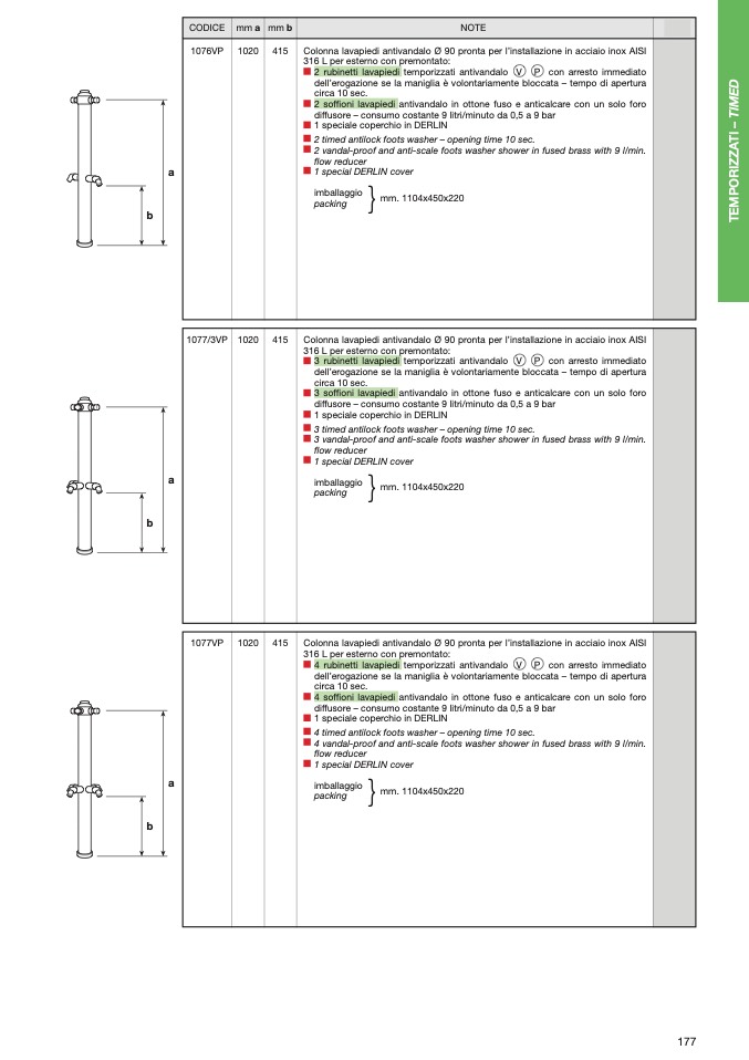 3 rubinetti lavapiedi temporizzati antivandalo V