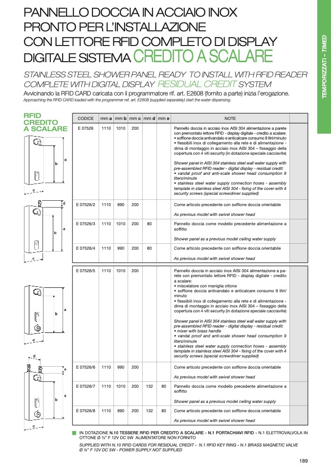 IN DOTAZIONE N.10 TESSERE RFID PER CREDITO A SCALARE - N.1 PORTACHIAVI RFID - N.1 ELETTROVALVOLA IN