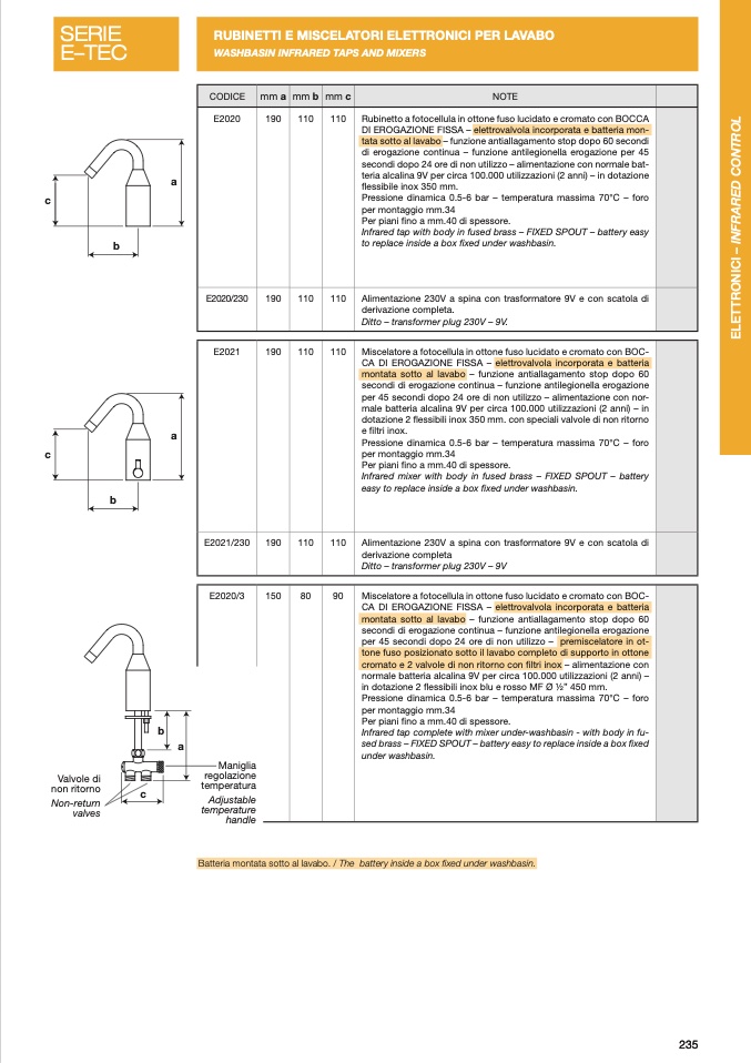 WASHBASIN INFRARED TAPS AND MIXERS