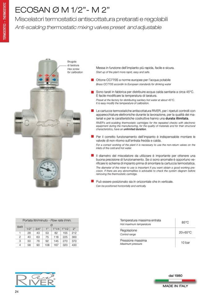 Le cartucce termostatiche antiscottatura RIVER, per i ripetuti controlli con