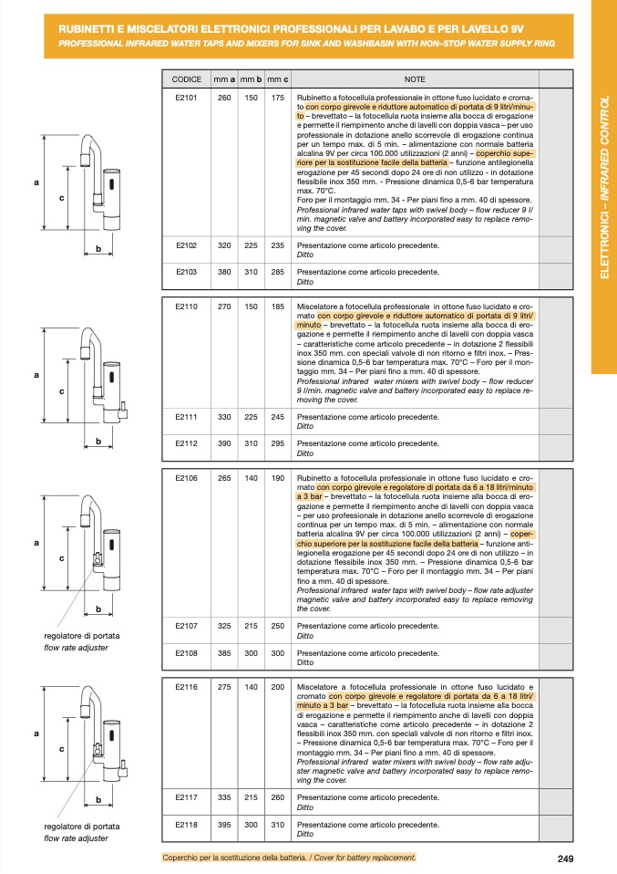 RUBINETTI E MISCELATORI ELETTRONICI PROFESSIONALI PER LAVABO E PER LAVELLO 9V