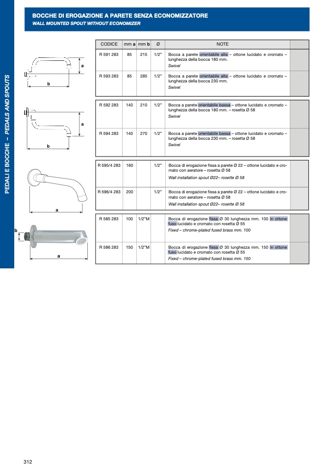 Bocca a parete orientabile alta – ottone lucidato e cromato –