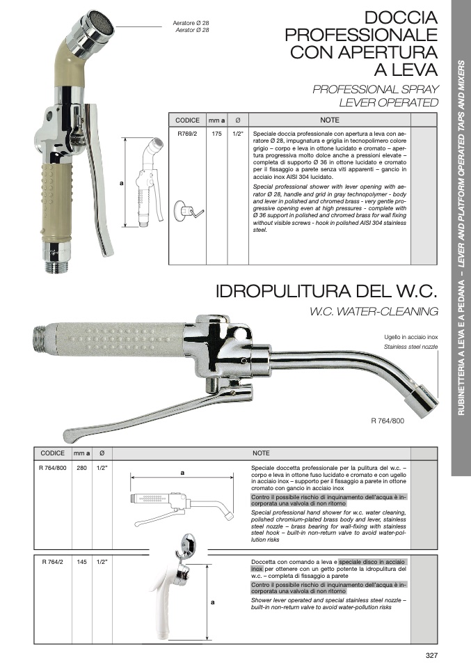 corpo e leva in ottone fuso lucidato e cromato e con ugello