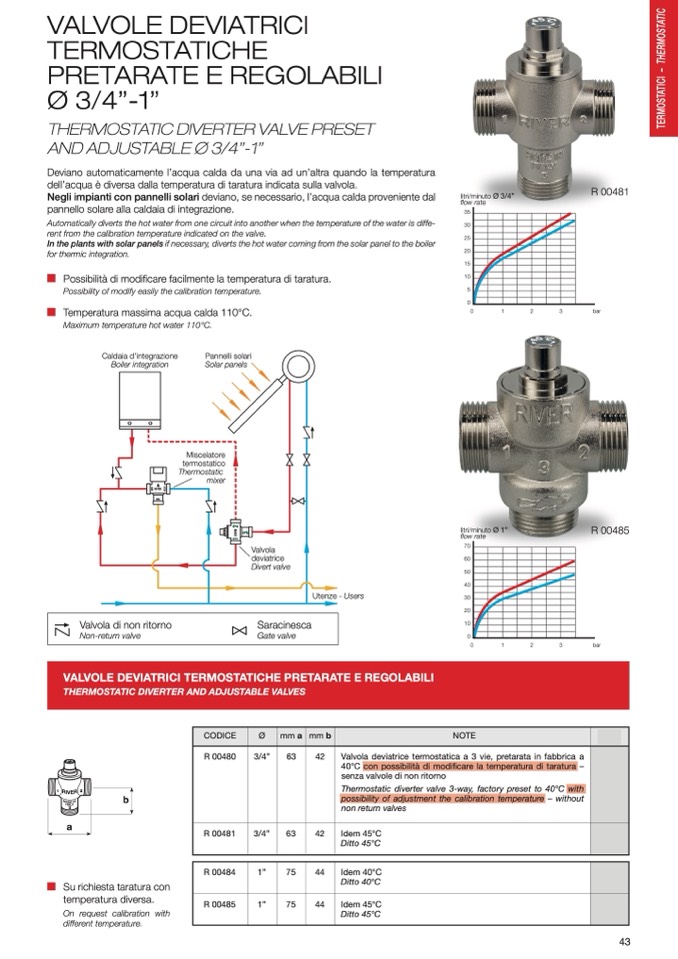 VALVOLE DEVIATRICI TERMOSTATICHE PRETARATE E REGOLABILI