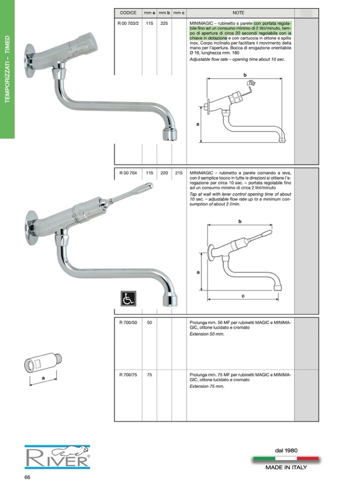 olunga mm. 50 MF per rubinetti MAGIC e MINIMA-