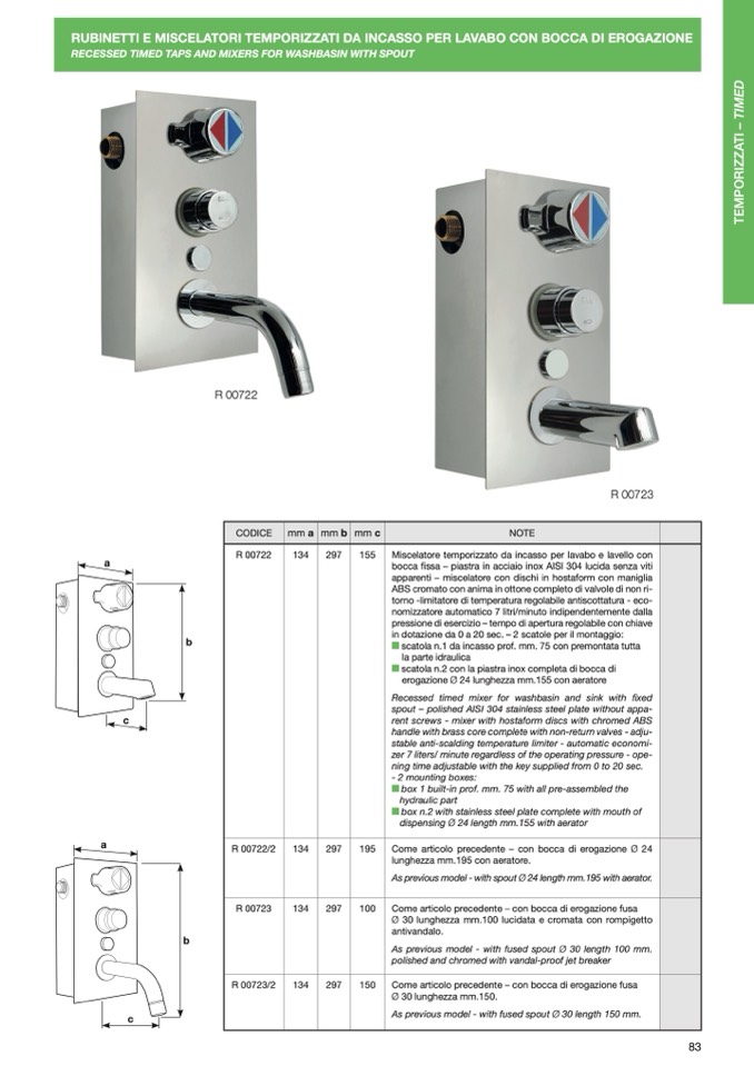 RECESSED TIMED TAPS AND MIXERS FOR WASHBASIN WITH SPOUT
