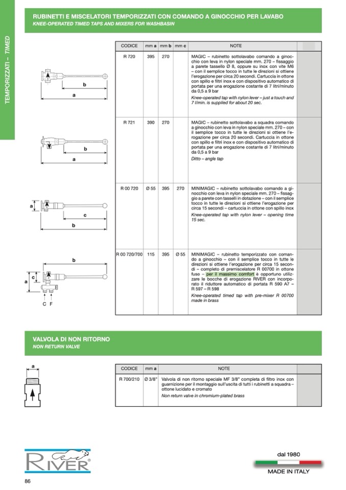 RUBINETTI E MISCELATORI TEMPORIZZATI CON COMANDO A GINOCCHIO PER LAVABO