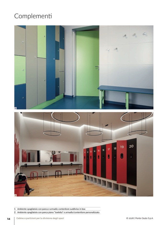 1 Ambiente spogliatoio con panca e armadio contenitore suddiviso in bo