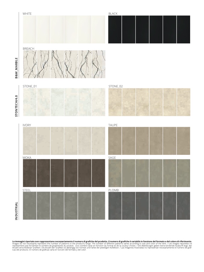verschiedener Grafiken. Die Anzahl der Grafiken ist abhängig von Format und Farbe der jeweiligen Kollektion. / Las imágenes mostradas no representan necesariamente el número de gráf