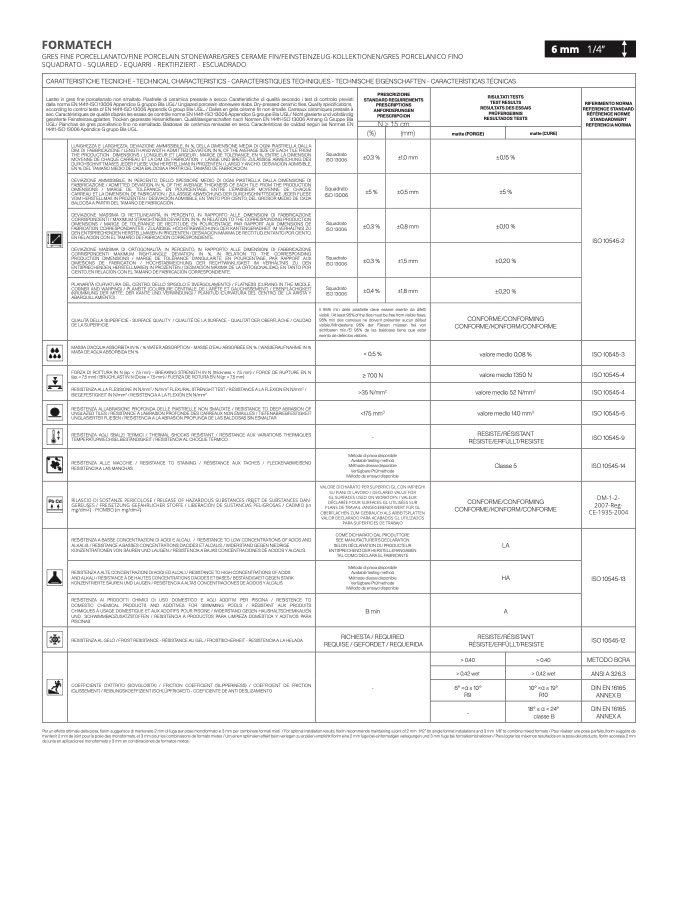 dalla norma EN 14411-ISO 13006 Appendice G gruppo BIa UGL/ Unglazed porcelain stoneware slabs. Dry-pressed ceramic tiles. Quality speci