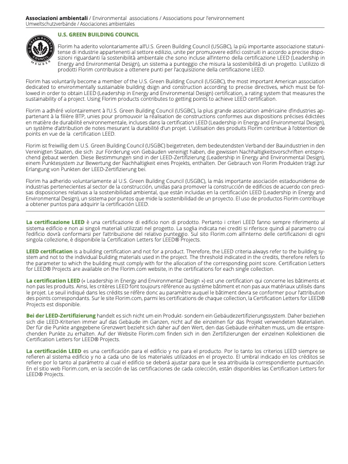 for LEED® Projects are available on the Florim.com website, in the certifications for each single collection.
