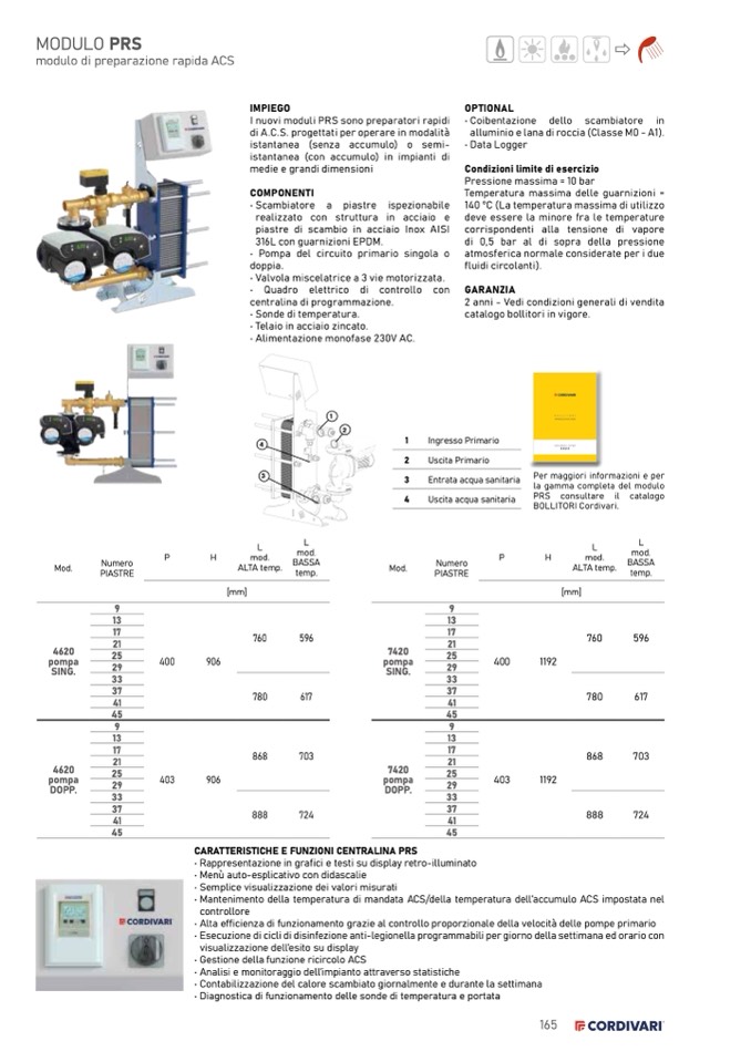 • Alta efficienza di funzionamento grazie al controllo proporzionale della velocità delle pompe primario