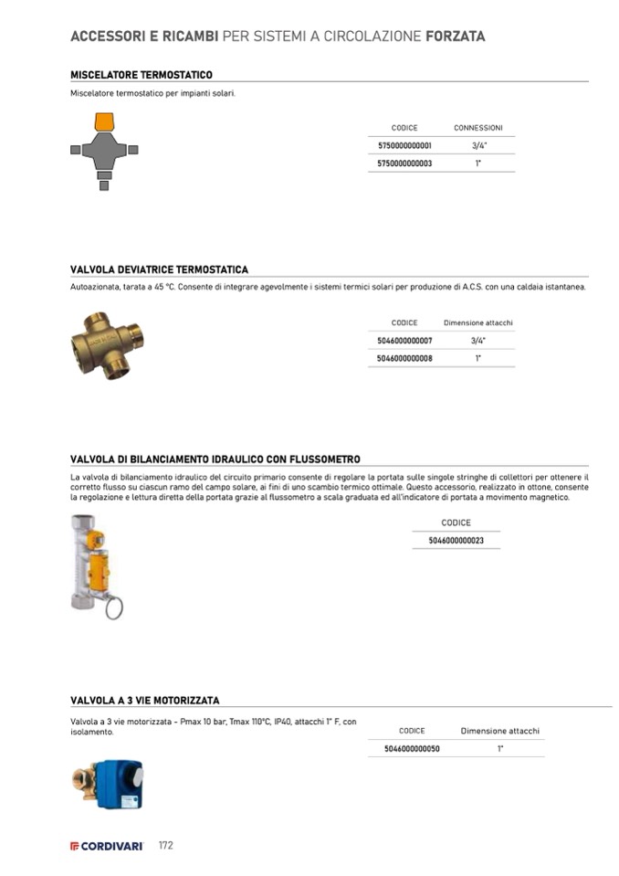 Autoazionata, tarata a 45 °C. Consente di integrare agevolmente i sistemi termici solari per produzione di A.C.S. con una caldaia istantanea.