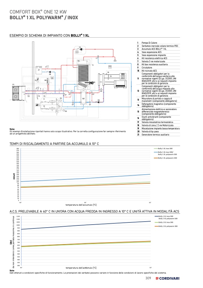Dati ottenuti a condizioni specifiche di funzionamento. Le prestazioni dei serbatoi possono variare in funzione delle condizioni di lavoro specifiche del sistema.