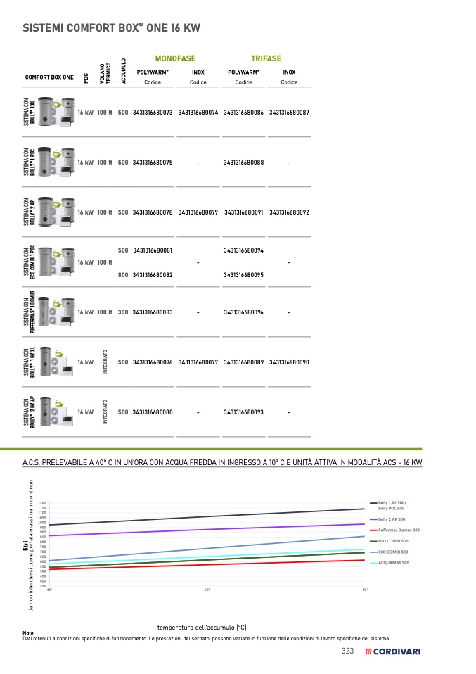 Dati ottenuti a condizioni specifiche di funzionamento. Le prestazioni dei serbatoi possono variare in funzione delle condizioni di lavoro specifiche del sistema.