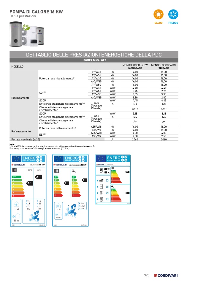 DETTAGLIO DELLE PRESTAZIONI ENERGETICHE DELLA PDC