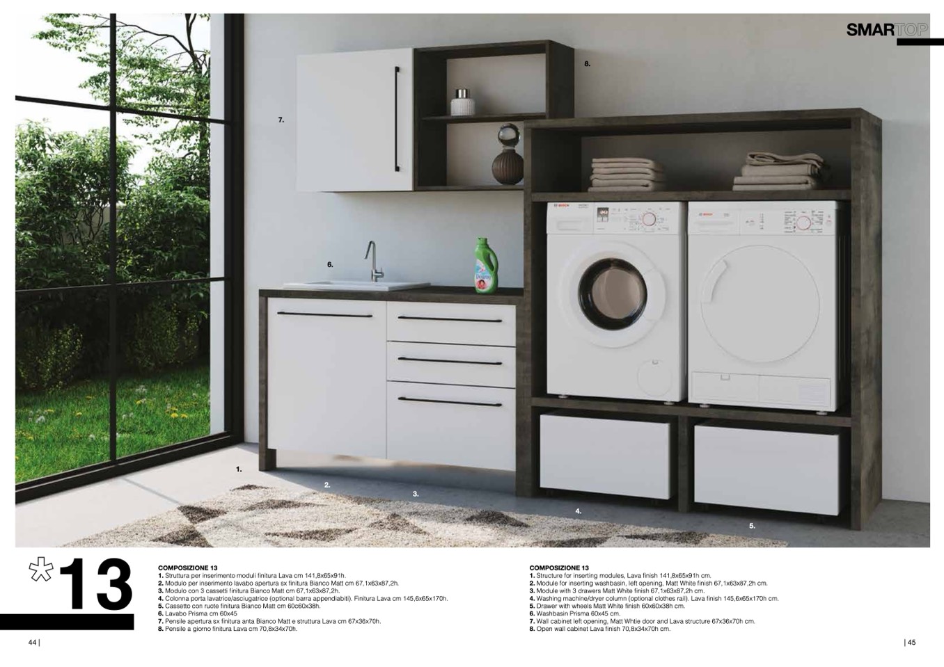 4. Colonna porta lavatrice/asciugatrice (optional barra appendiabiti). Finitura Lava cm 145,6x65x170h.