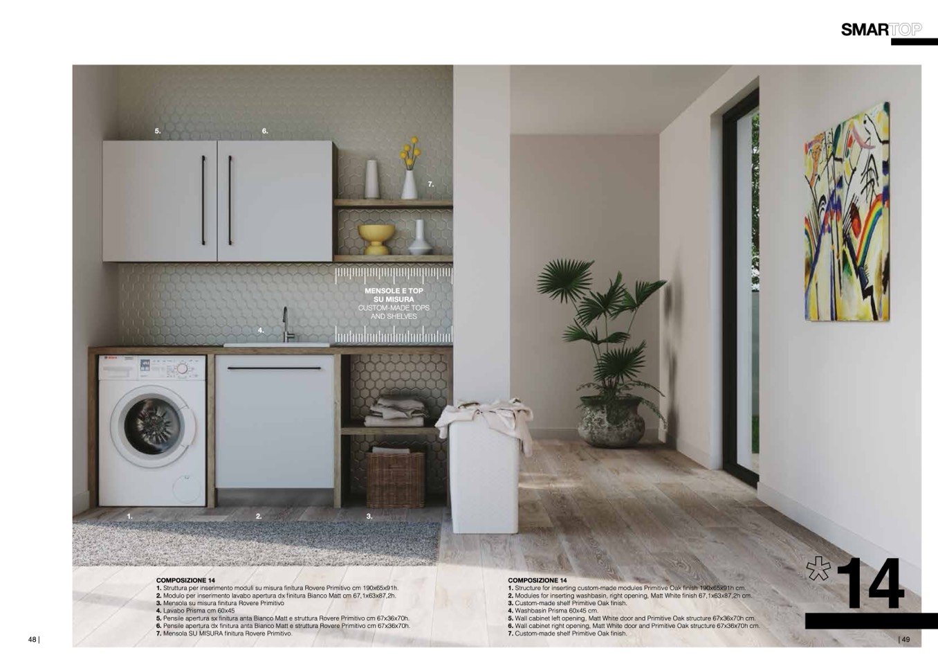 6. Pensile apertura dx finitura anta Bianco Matt e struttura Rovere Primitivo cm 67x36x70h.