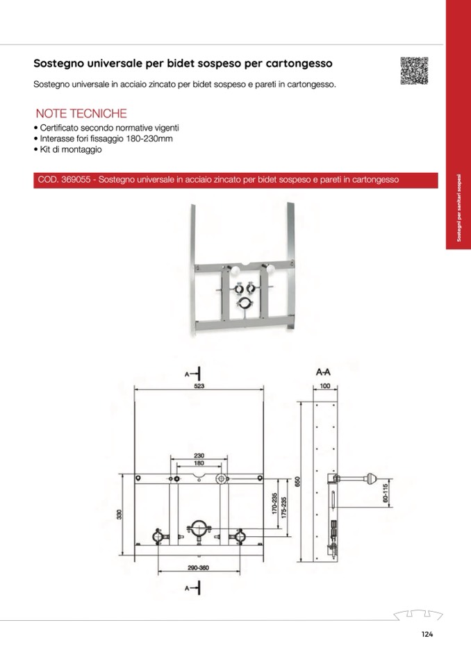 COD. 369055 - Sostegno universale in acciaio zincato per bidet sospeso e pareti in cartongesso