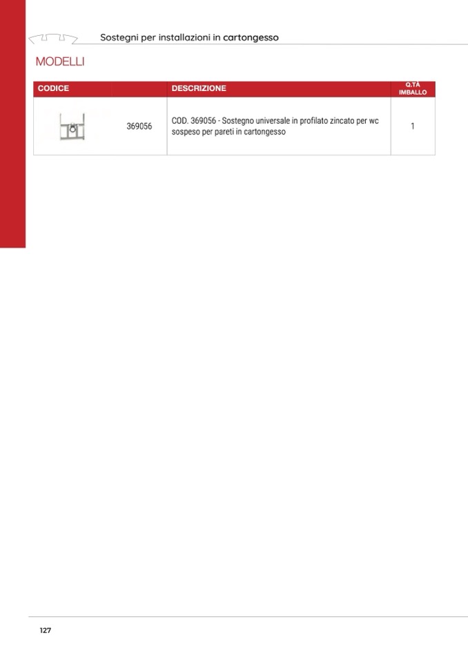 COD. 369056 - Sostegno universale in profilato zincato per wc