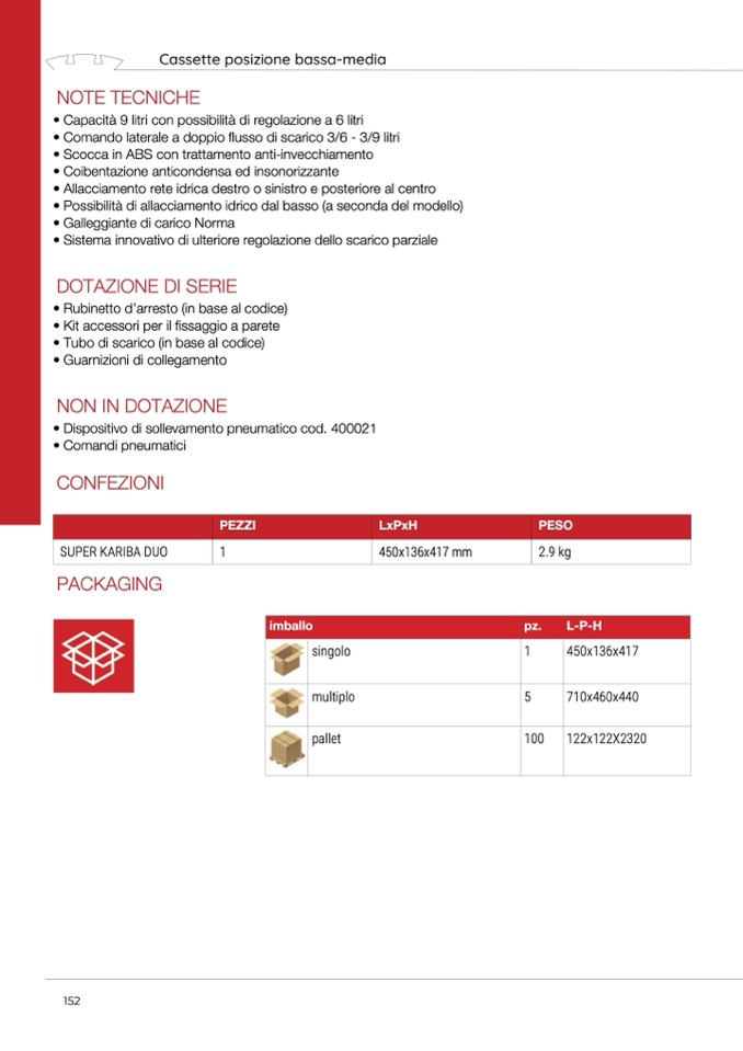 • Comando laterale a doppio flusso di scarico 3/6 - 3/9 litri
