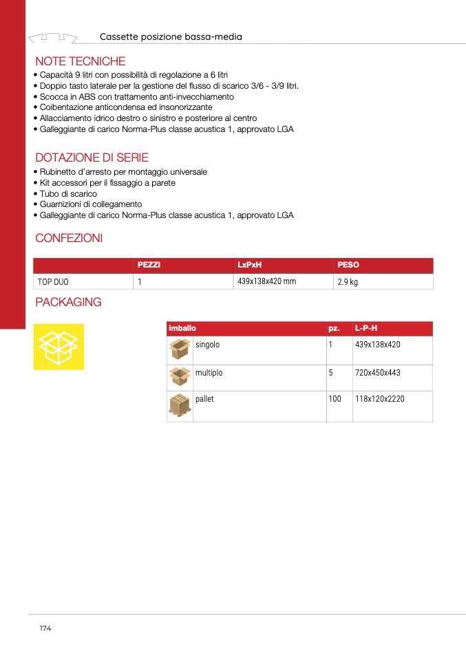 • Doppio tasto laterale per la gestione del flusso di scarico 3/6 - 3/9 litri.