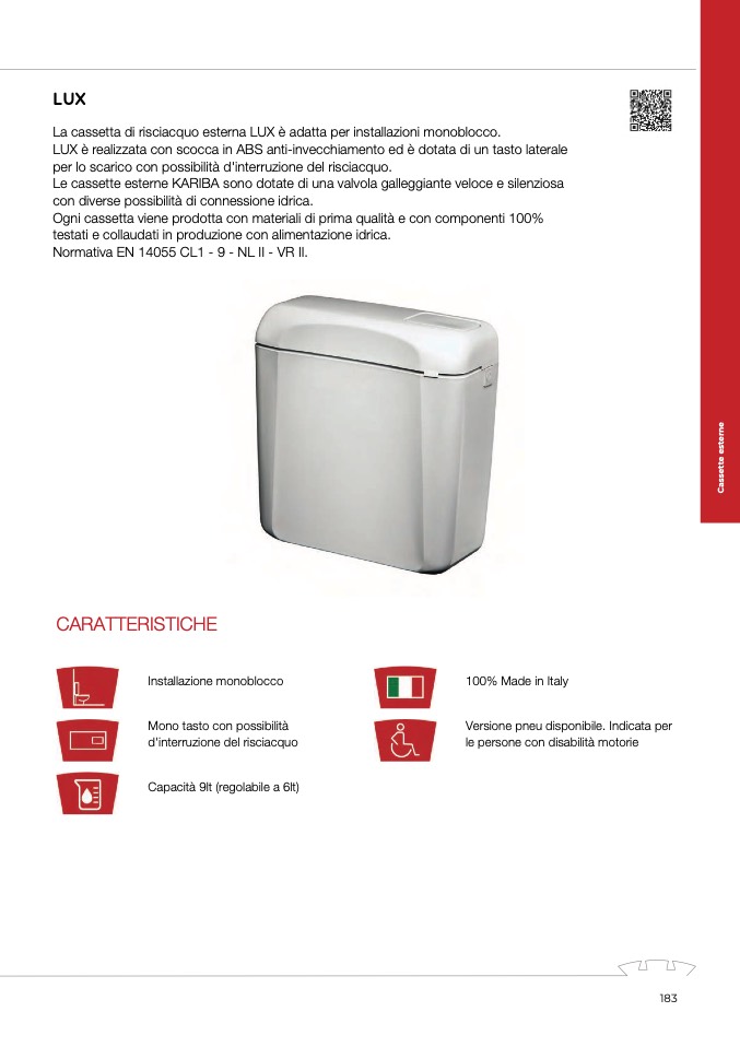 La cassetta di risciacquo esterna LUX è adatta per installazioni monoblocco.