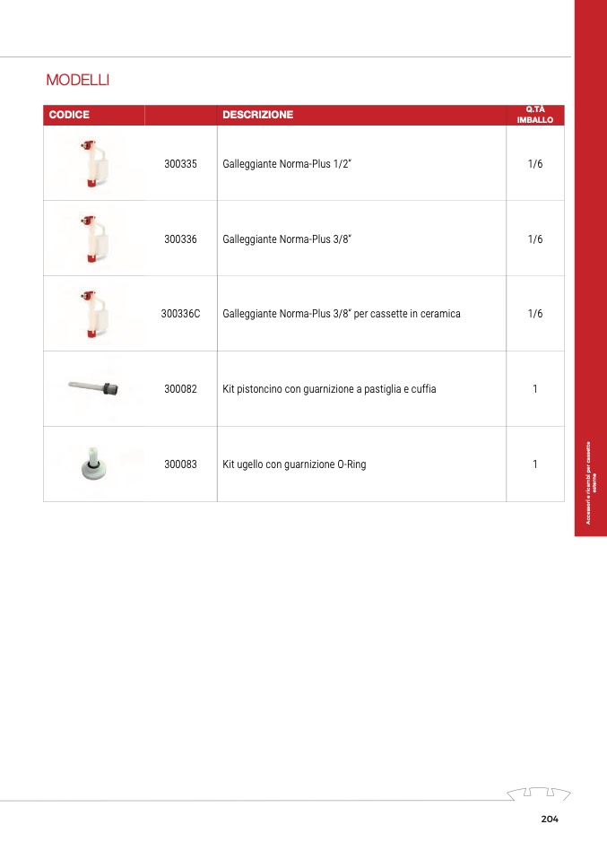 Galleggiante Norma-Plus 3/8“ per cassette in ceramica