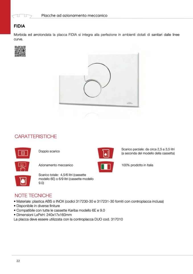 • Materiale: plastica ABS o INOX (codici 317230-30 e 317231-30 forniti con controplacca inclusa)