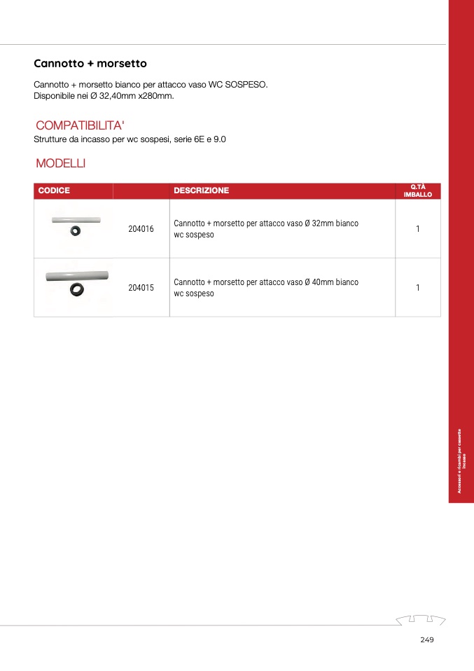 Cannotto + morsetto bianco per attacco vaso WC SOSPESO.