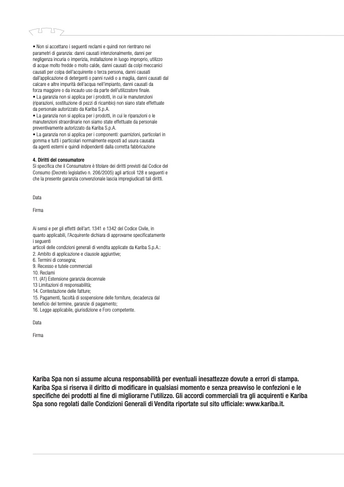 articoli delle condizioni generali di vendita applicate da Kariba S.p.A.: