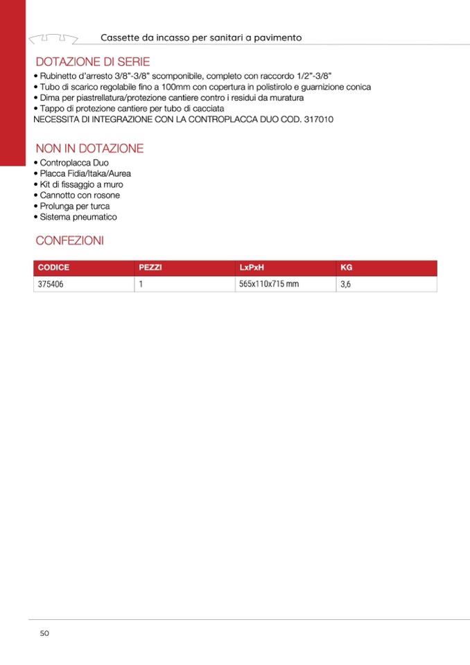 NECESSITA DI INTEGRAZIONE CON LA CONTROPLACCA DUO COD. 317010