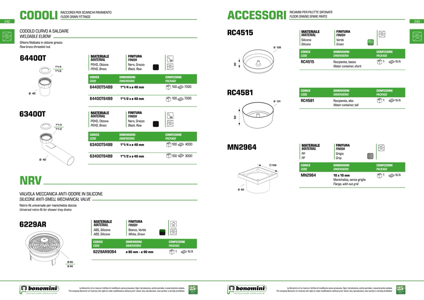 La Bonomini srl si riserva il diritto di modificare senza preavviso. Ogni riproduzione, anche parziale, è severamente vietata