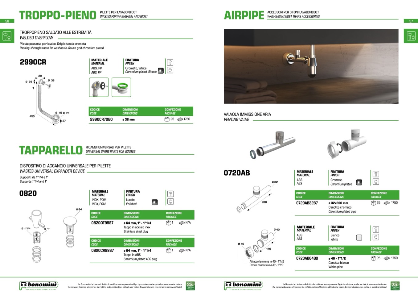 La Bonomini srl si riserva il diritto di modificare senza preavviso. Ogni riproduzione, anche parziale, è severamente vietata
