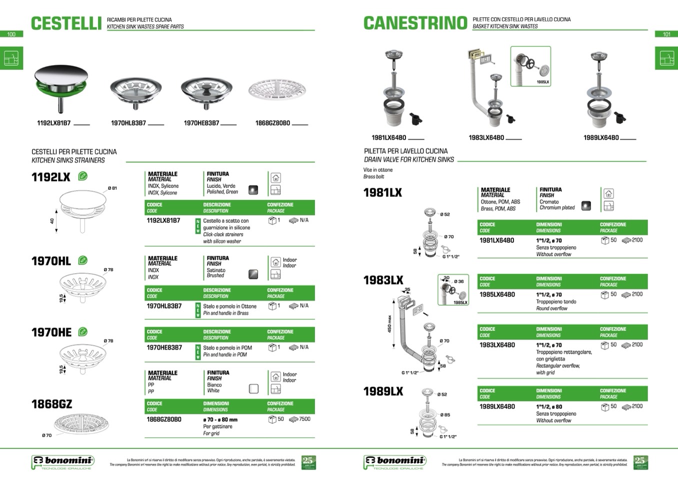 La Bonomini srl si riserva il diritto di modificare senza preavviso. Ogni riproduzione, anche parziale, è severamente vietata