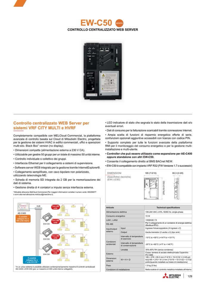 • EW-C50 è compatibile con impianto VRF R32 (FW Versione 1.7 o successivi
