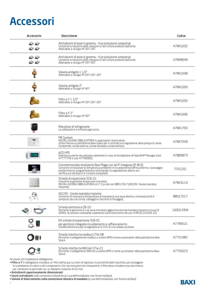 • Giunti antivibranti sulle connessioni idrauliche (a cura dell’installatore, non forniti da Baxi).